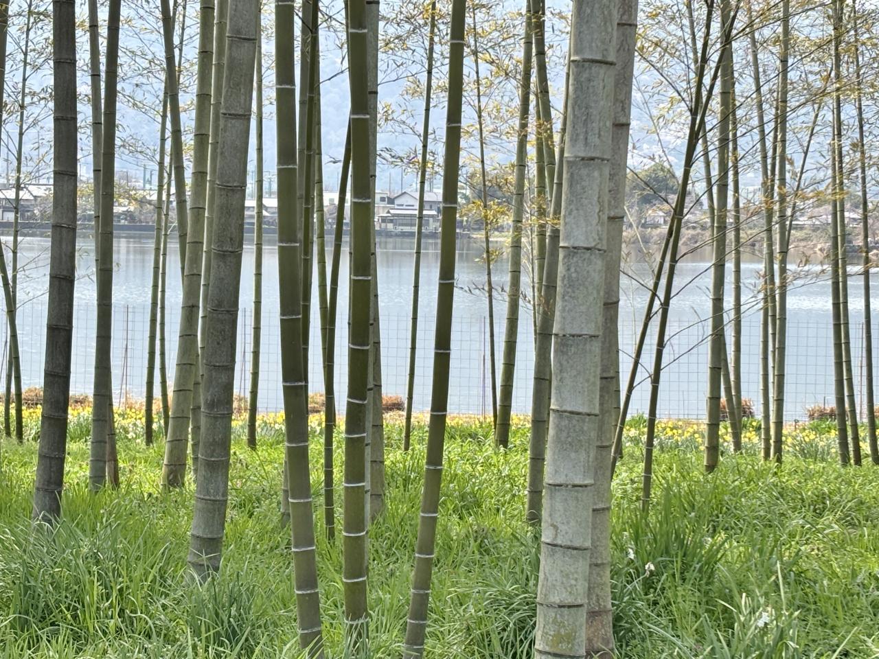 対岸に少しだけ咲いている菜の花を入れても寂しいわ(^-^;