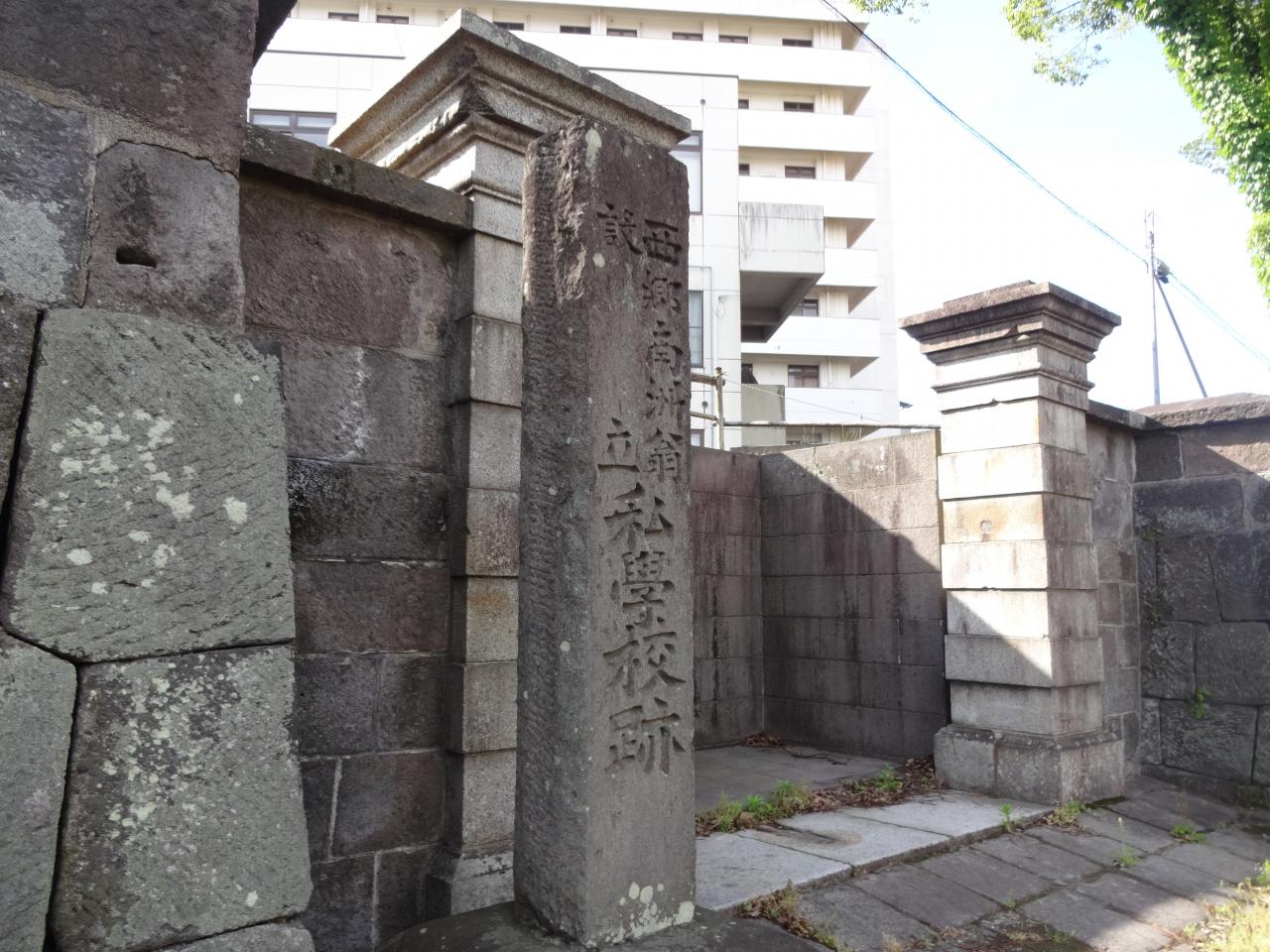 西郷関連の跡をたどります。こちらは少し戻って「私学校跡」。