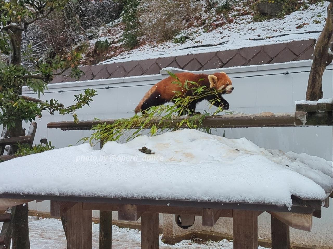 この日の積雪量は程々。昼すぎには放飼場内はレッサーパンダが歩いたところの雪は溶けてツルツルになっちゃった。1日中少し陽が出たり雪が舞ったりとコロコロ変わるお天気で、様々な様子を見れる結果となり楽しかったです。