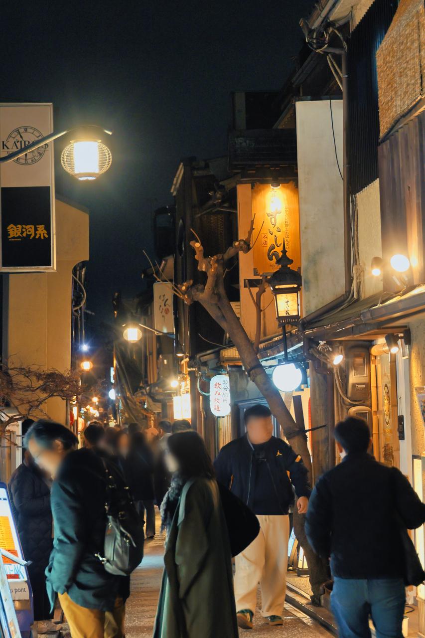 夕飯は先斗町にあるお店へ。この通りは人通りが多く賑やかな飲み屋街の様ですが、新宿や渋谷の様な賑やかさではなく、上品な通りです。
