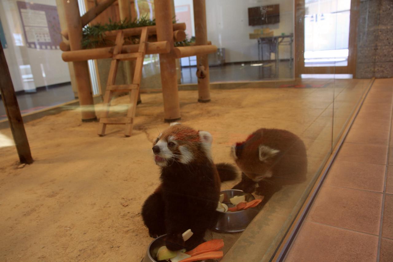 「レッサーパンダのいえ」でガラス越しに超近距離観察できます。 -