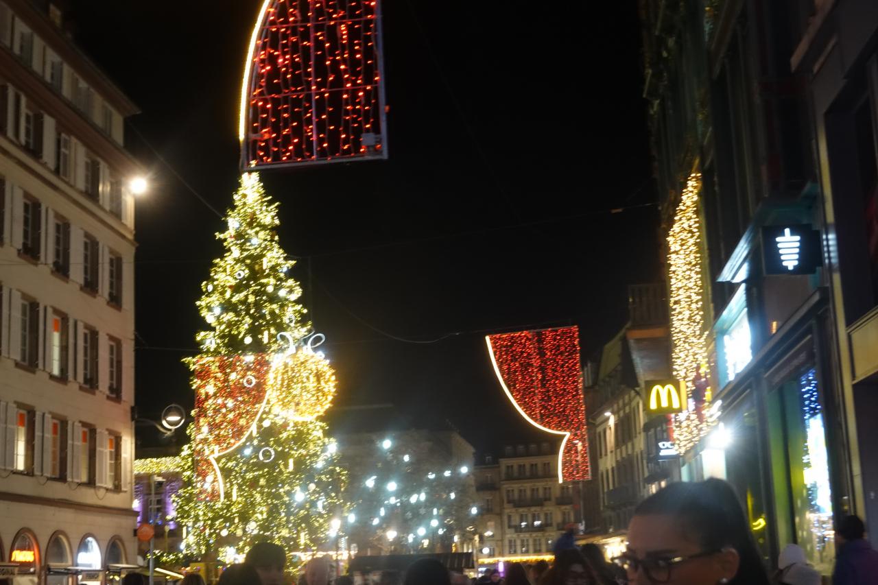 ストラスブール駅からクリスマスマーケット会場のクレーベル広場に歩いて行きます。 -