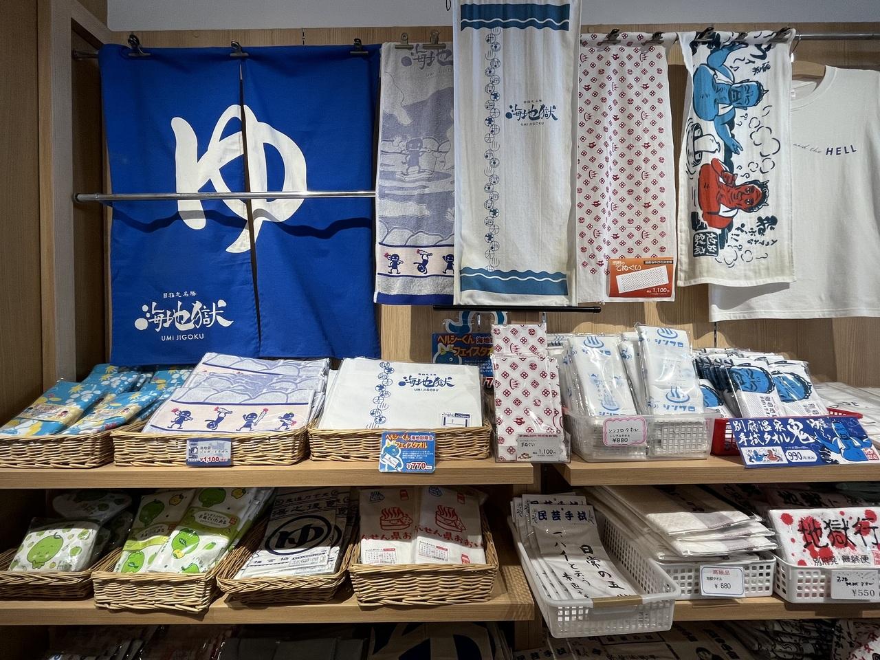 売店のお土産で気になったのがタオルや手ぬぐい。おんせん県ならではですよね。