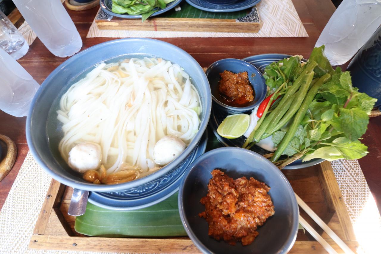 お昼はベトナムでいうフォー。ラオスでの名前は忘れた。下の方にある辛みのある味噌で味変しながら食べる。これは美味かった。