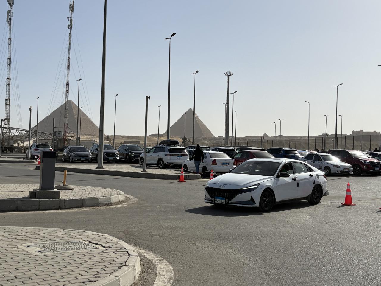 駐車場の向こうにはピラミッドが見えていました。