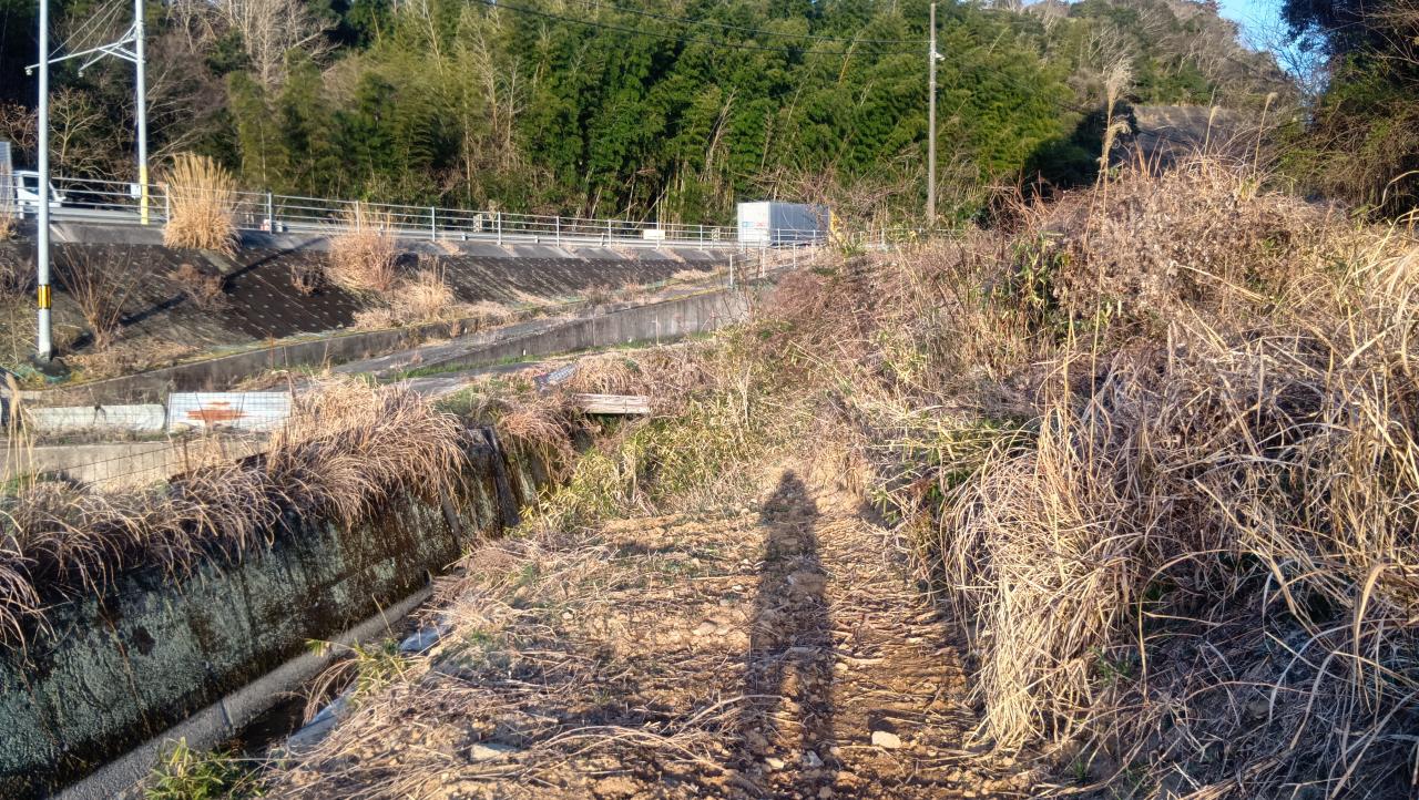 こんな、トゲトゲの草と格闘すると昔の道路跡に出れました。