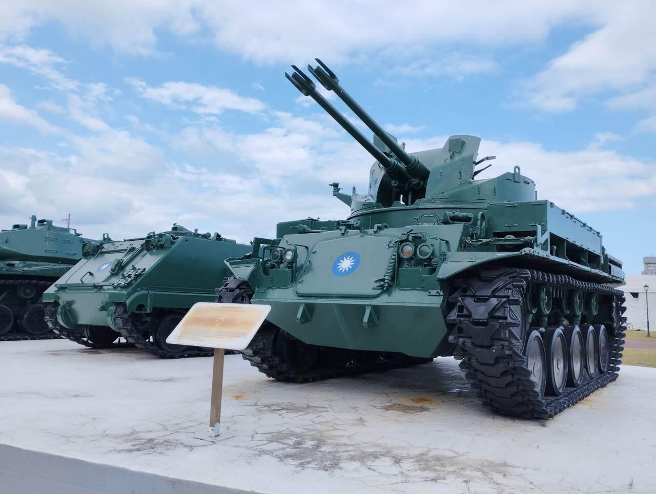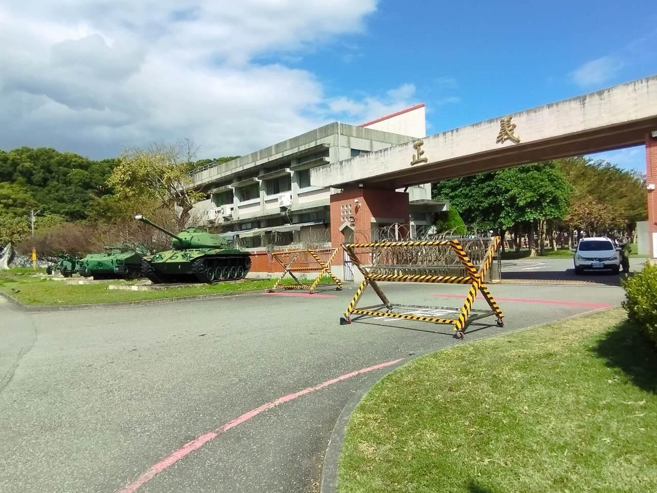 陸軍花東防衛指揮部の門の前には数台の戦闘車両が展示。