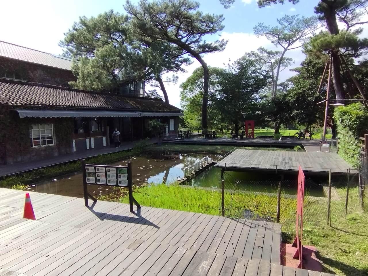 松園別館の外観。かつてこの松林の台地には霊が出ると噂されていた(軍事施設に人を近づけない為)。終戦時に日本軍指揮官がここで自害した後、2001年に改修されるまで長年放置されていた。
