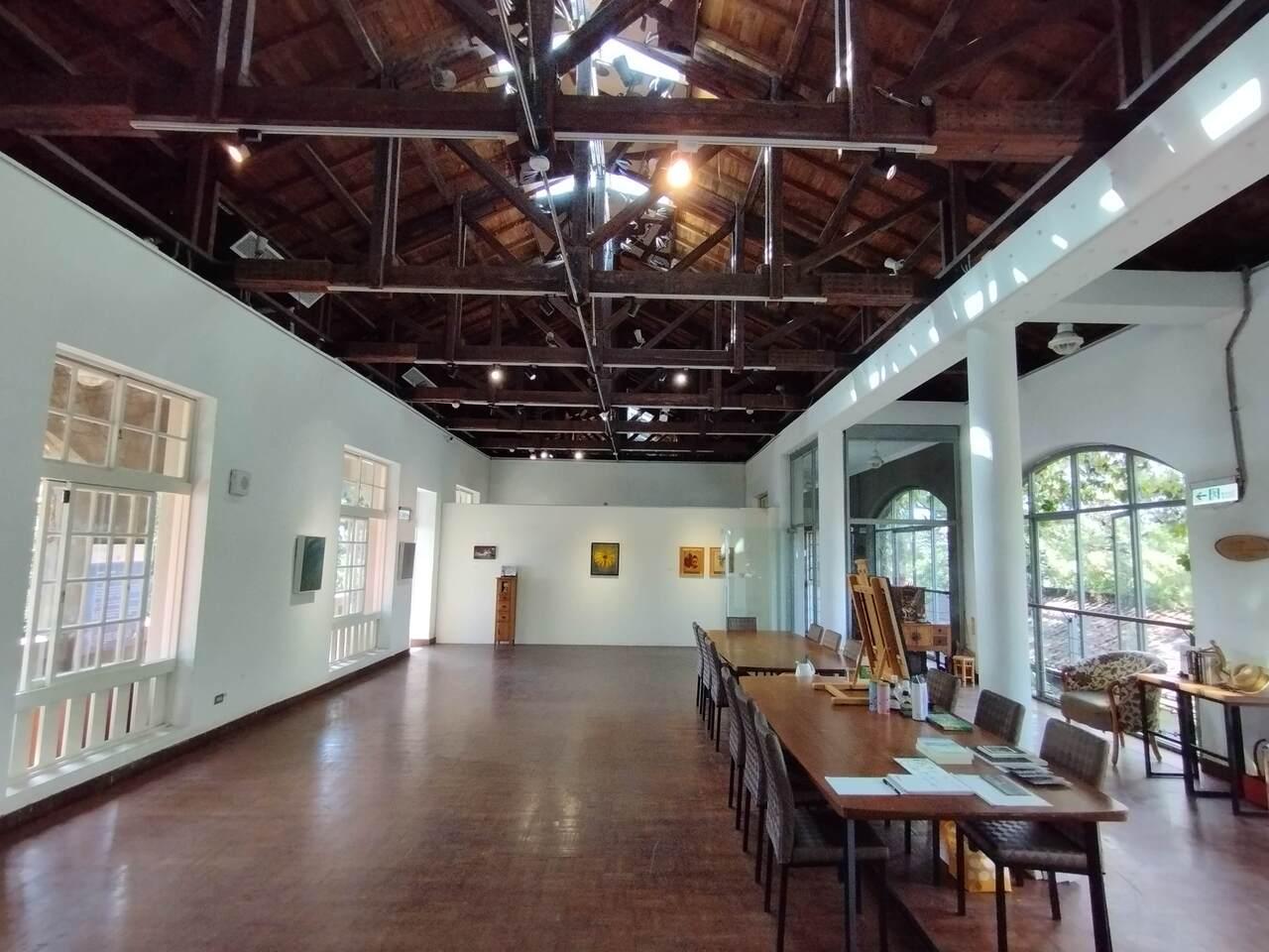 松園別館の2階。日本時代の軍事施設(花蓮港兵事部)を利用した展示スペース。和風建築の梁構造が見所。