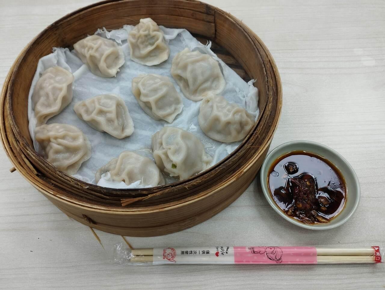 看板メニューの鮮肉蒸餃(45元)。安定の美味しさでリーズナブル。