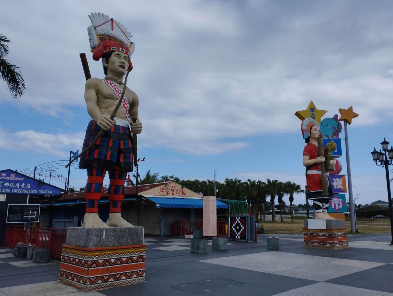 夜市の一角には原住民区画もあり5mほどありそうな男女の像がお出迎え。