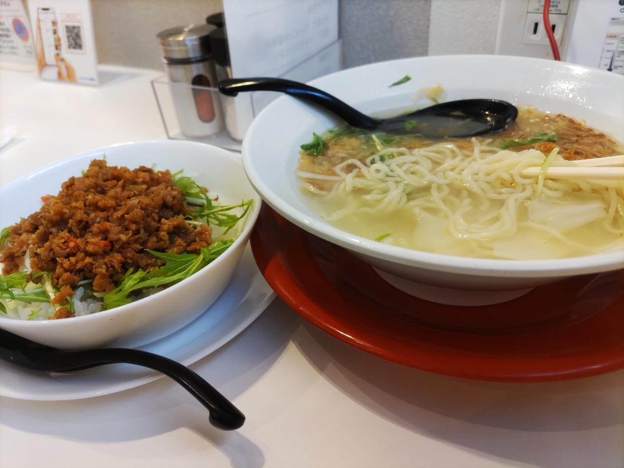 やさしいワンタンラーメン780円 ミニ鶏そぼろ丼280円