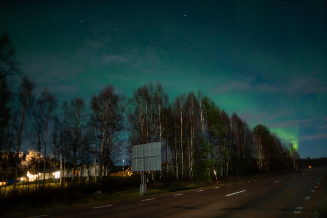 オーロラツアーは、予期していた北の方ではなく、スウェーデンの方に向かってひたすら走ります。最初のスポットで1時間以上待ちますが、オーロラは現れず。空は雲に覆われています。