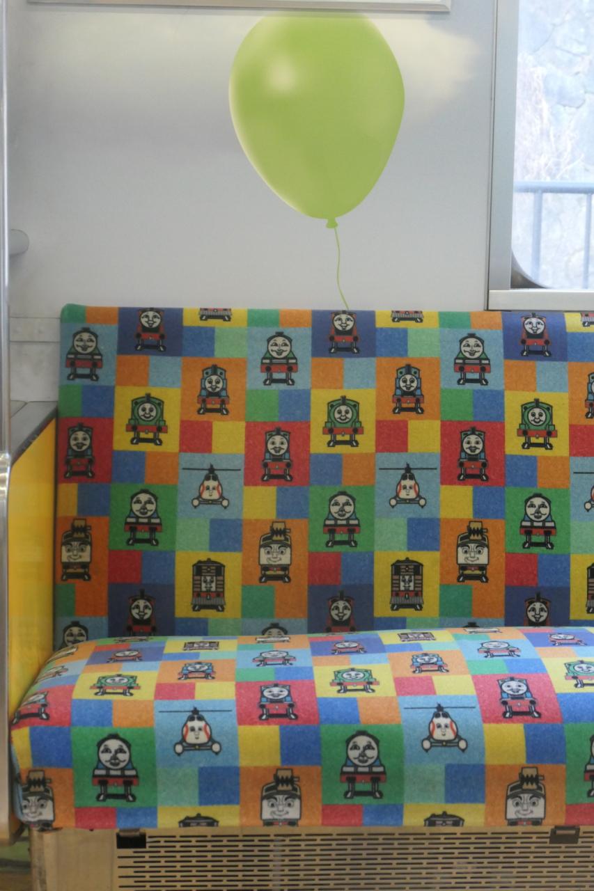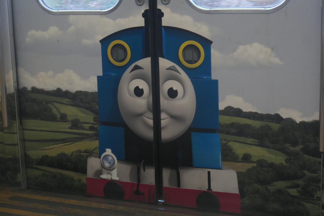 機関車トーマスに統一された富士急の電車に乗って河口湖を目指します。何故機関車トーマスなのでしょうか?日本には機関車弥右衛門がいるじゃないですか!