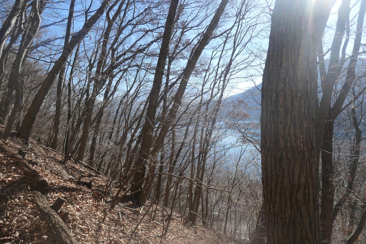 冬の稜線歩きは心地良いです。これが夏だと葉が生い茂り視界を遮ってしまいます。
