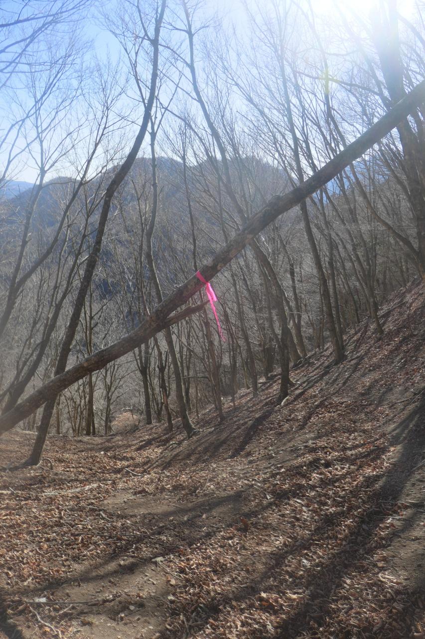 何分、この手の坂道は滑りますし、中途半端に開けているのでルートを誤りやすいと思うのです。ついつい周囲を見渡してはピンクのテープを探します。