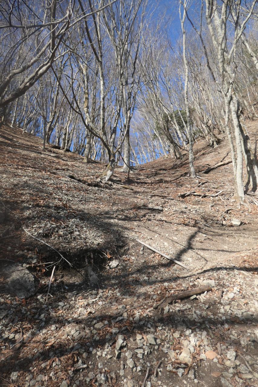 おっと危ない!こんな崩落個所がありました。そんな危険個所を乗り超えて、ホッとしたのか、肝心な分岐も、展望所も、スルーしてしまい慌てて引き返しました。どちらもとても解り辛い箇所にありました。