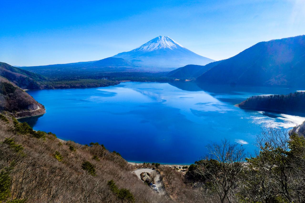 また、湖の形も丸く整っており、その周囲も自然が豊か。また、湖の大きさも手頃で、箱庭的魅力が大きいのが中之倉展望台から眺める富士山と本栖湖の最大の魅力でしょう。