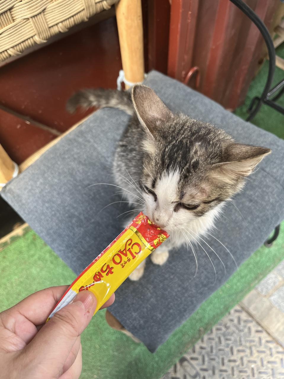 日本からあらかじめ猫との友好を築くために持参したチャオちゅ~る。