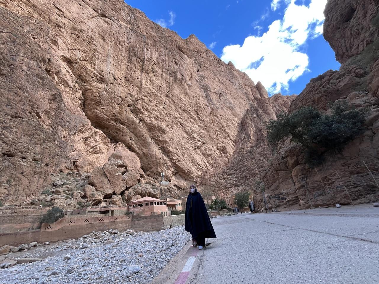 バブーシュ2つで200MAD。民族衣装は最初の予定の黒のジュラバから紺色マント(セルハム)に変わるが気に入った物を購入。500MADもしたが気にいったからよしとする。表紙の写真がそれだ。