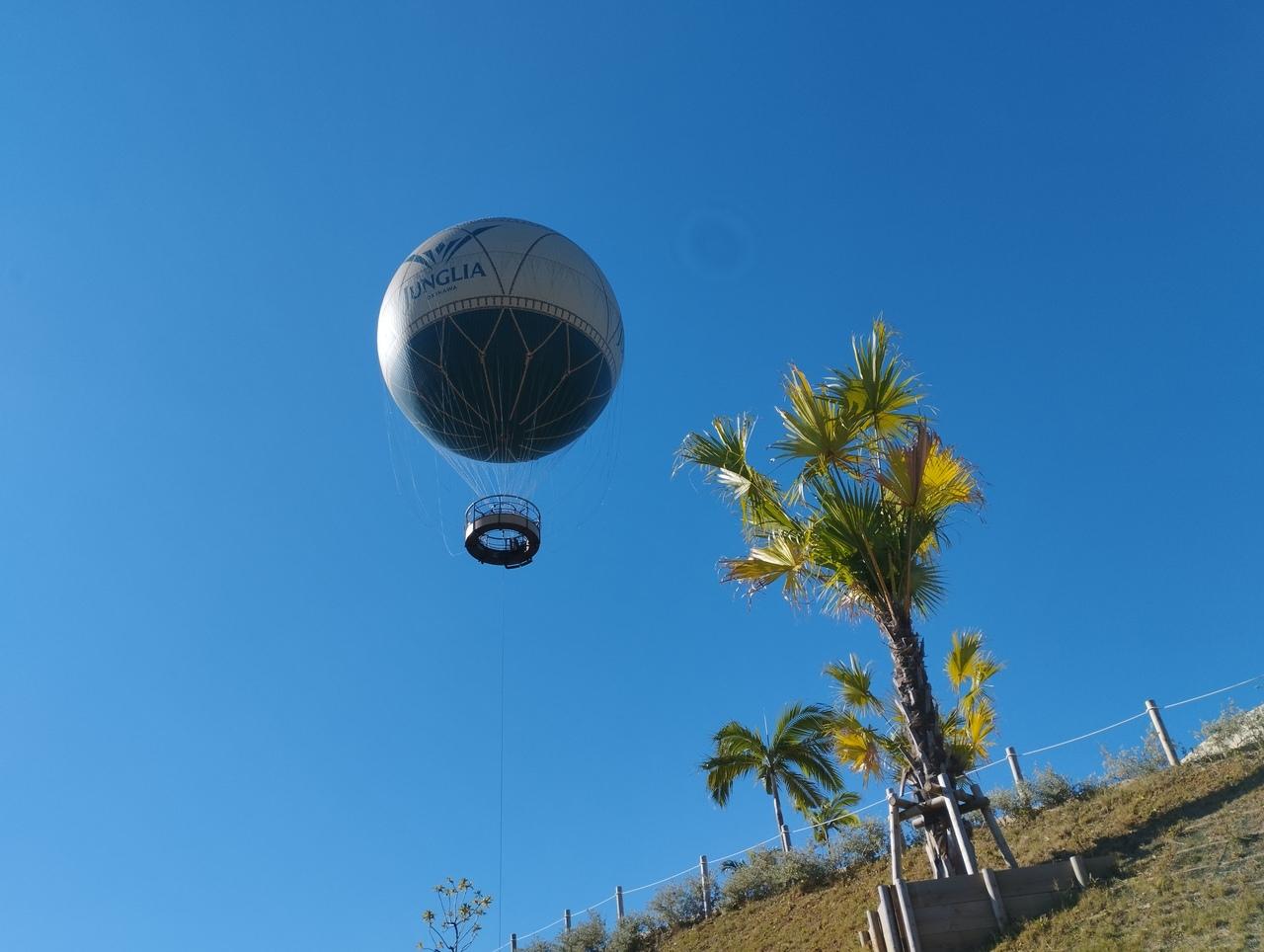 抽選で当たったアトラクション二つ目は「タイタンズ スイング」。5人乗りのブランコが、かなりの高さまで上げられ、代表者一人が紐をひっぱって掛け金を外して(?)スイングが始まるのですが、その一瞬が自由落下になるので怖いです!でも慣れてくると、南国の植生の森を見下ろせて、非日常感たっぷり。