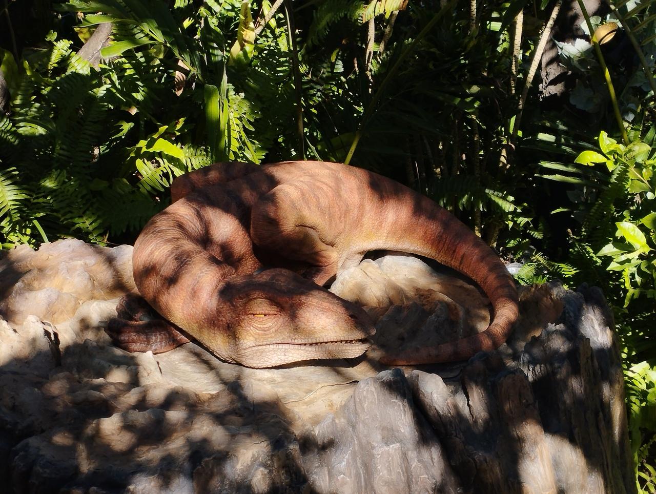 というわけで、最初のアトラクションは、並んで待てば参加できる「ファインディング ダイナソーズ」。これはお子様向きのものなのでしょうが、恐竜たちが本当に生きて見えるほど良く出来ていたことに、ちょっと感動しました。人の動きに反応したりもするようです。