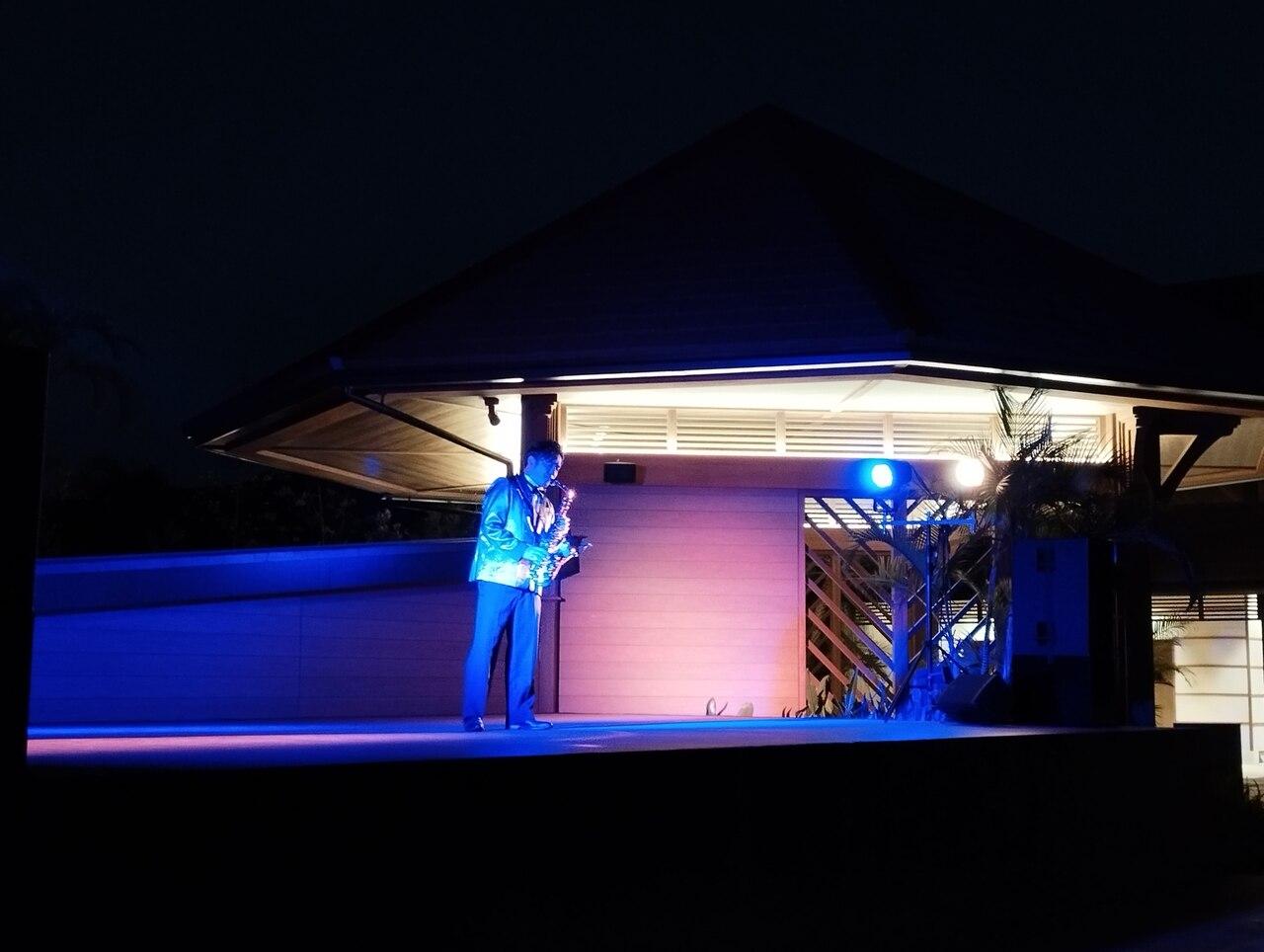 パノラマダイニングを出たところの広場では、サキソフォーンのライブをやっていました。