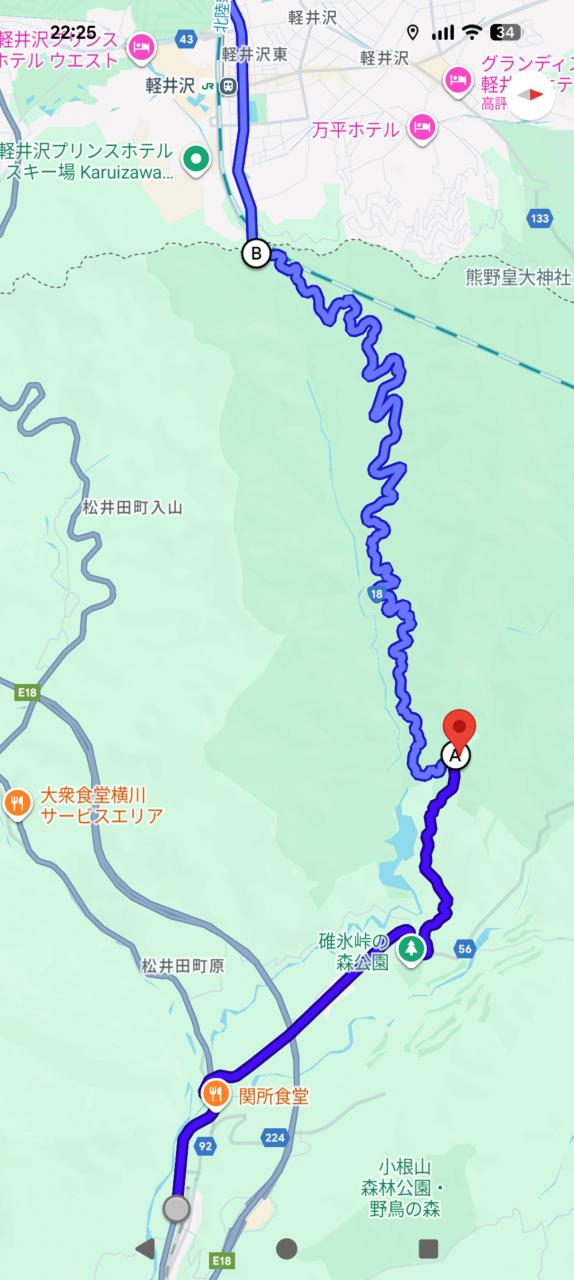 ここまで通ってきた碓氷峠旧道ルートを地図で示すと、こんな感じ。