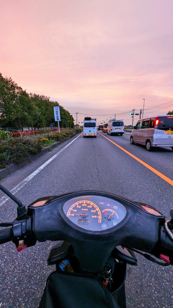 ほとんどの区間で渋滞が起きていましたが、夕景の空は綺麗でした笑 -