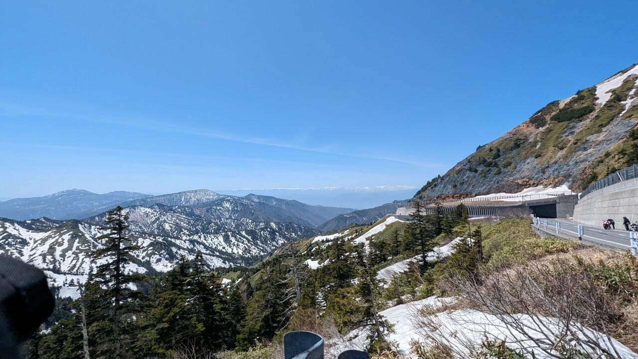 白沢洞門を通過したところにある展望台からは、ついに白馬の山々が見えました!