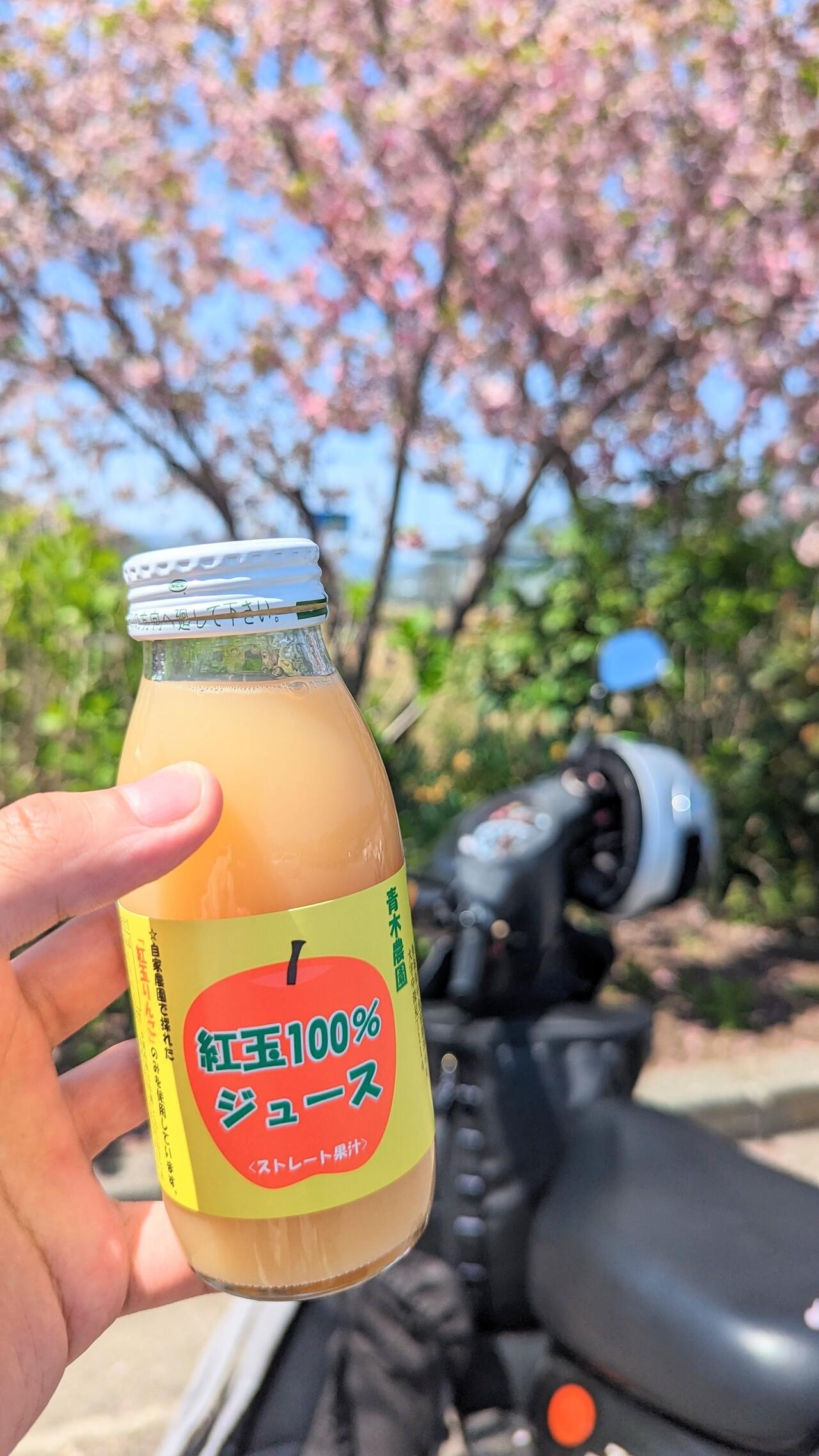 信州らしくりんごジュースで一息。