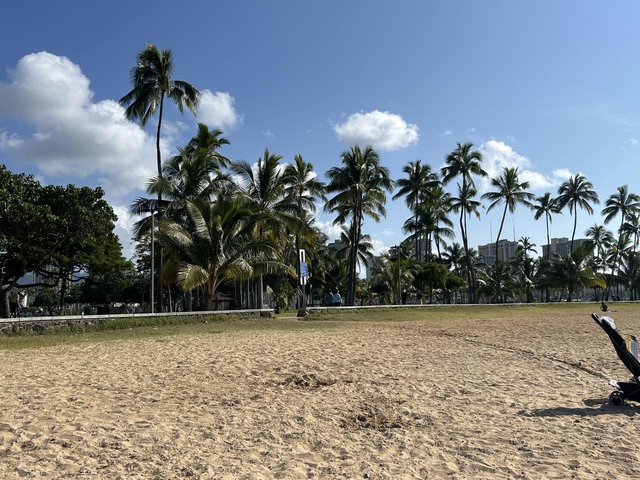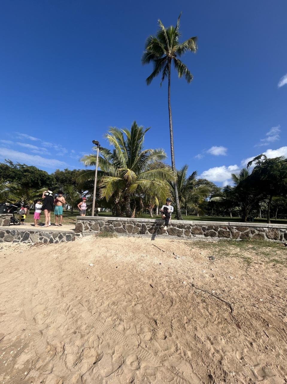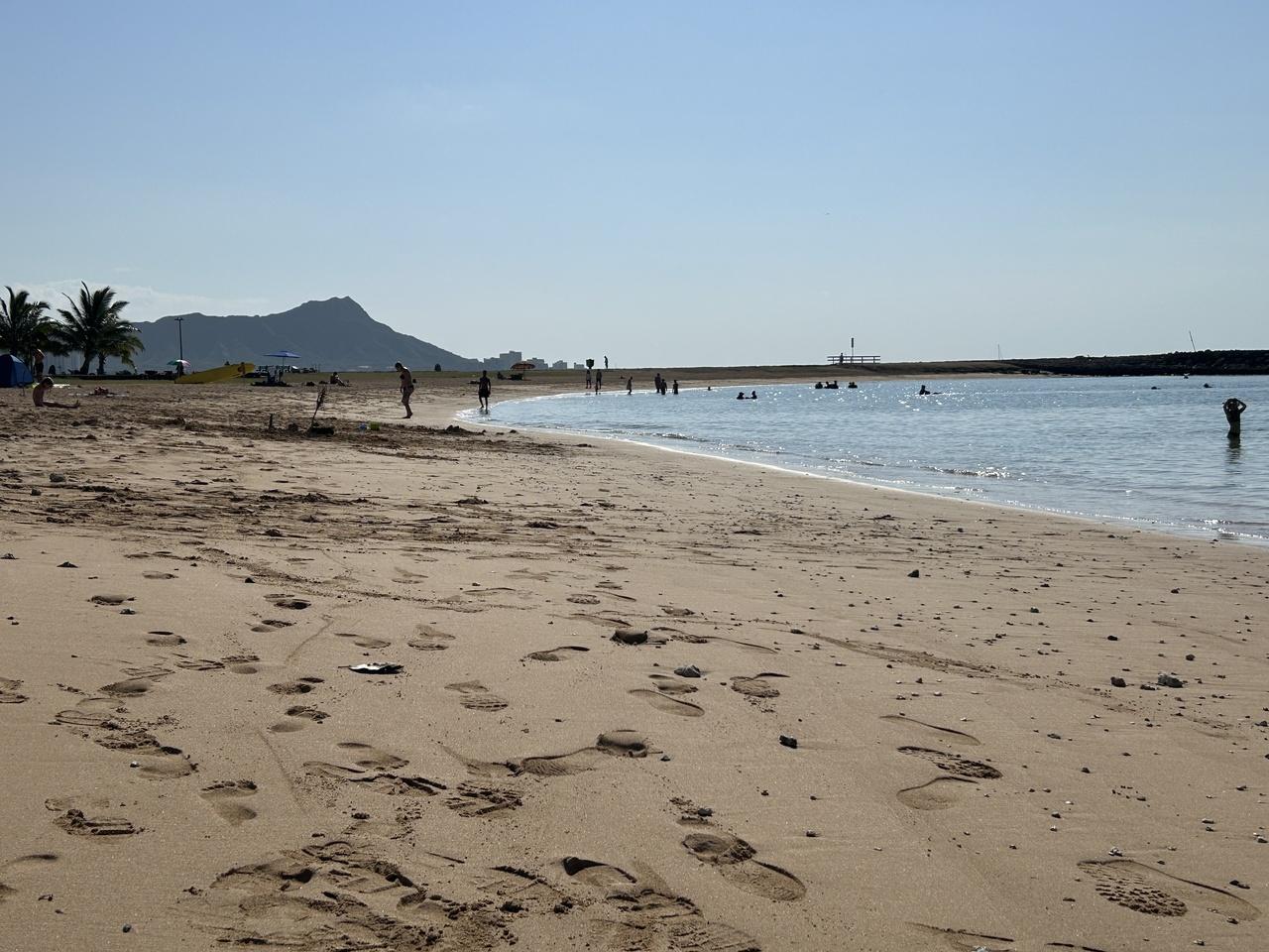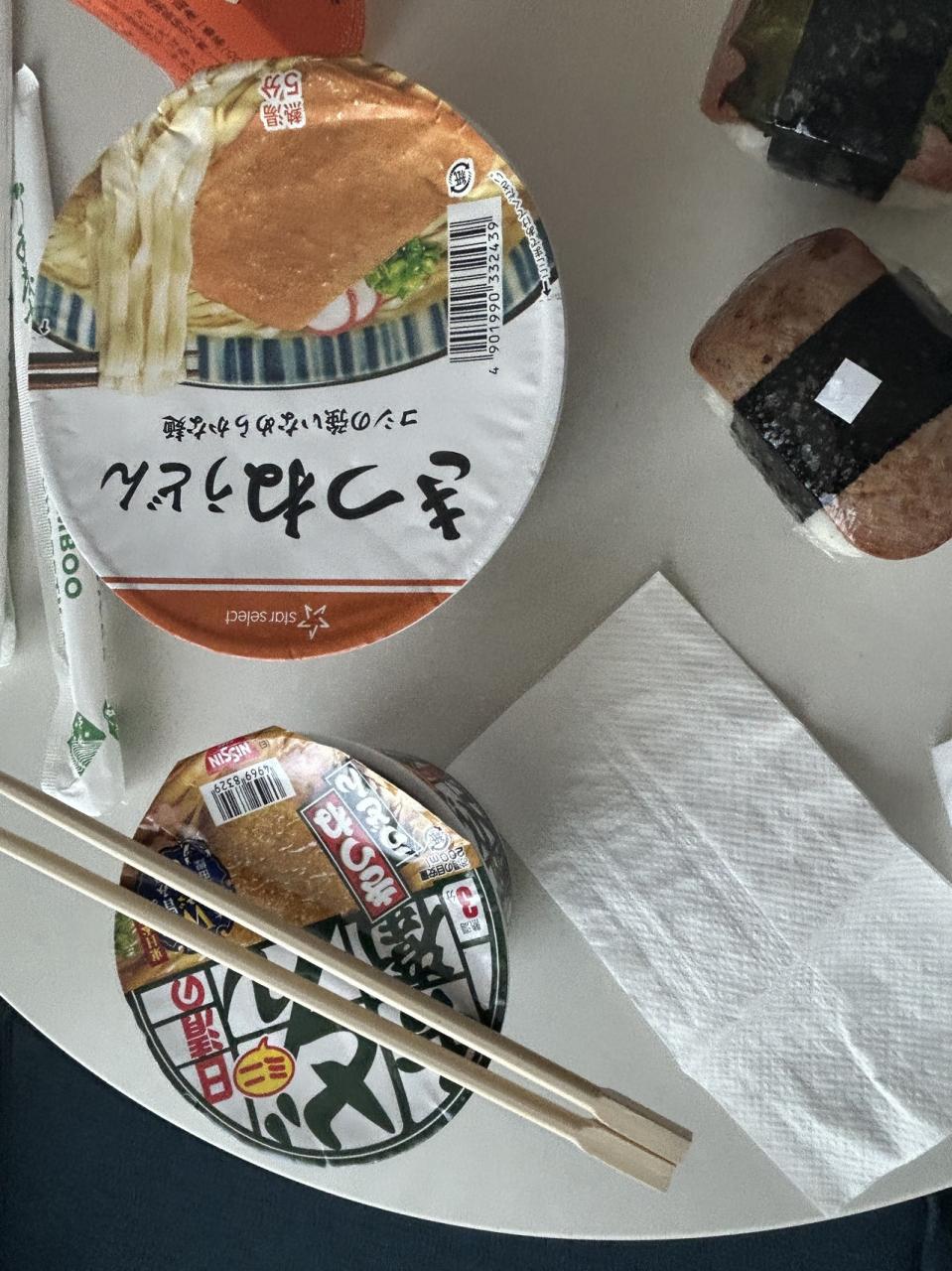 1月だけど日差しが暑くて1時間ぐらいしかいれません。お昼はいますめでスパムにぎりを買って、持参したカップ麺と部屋でランチ