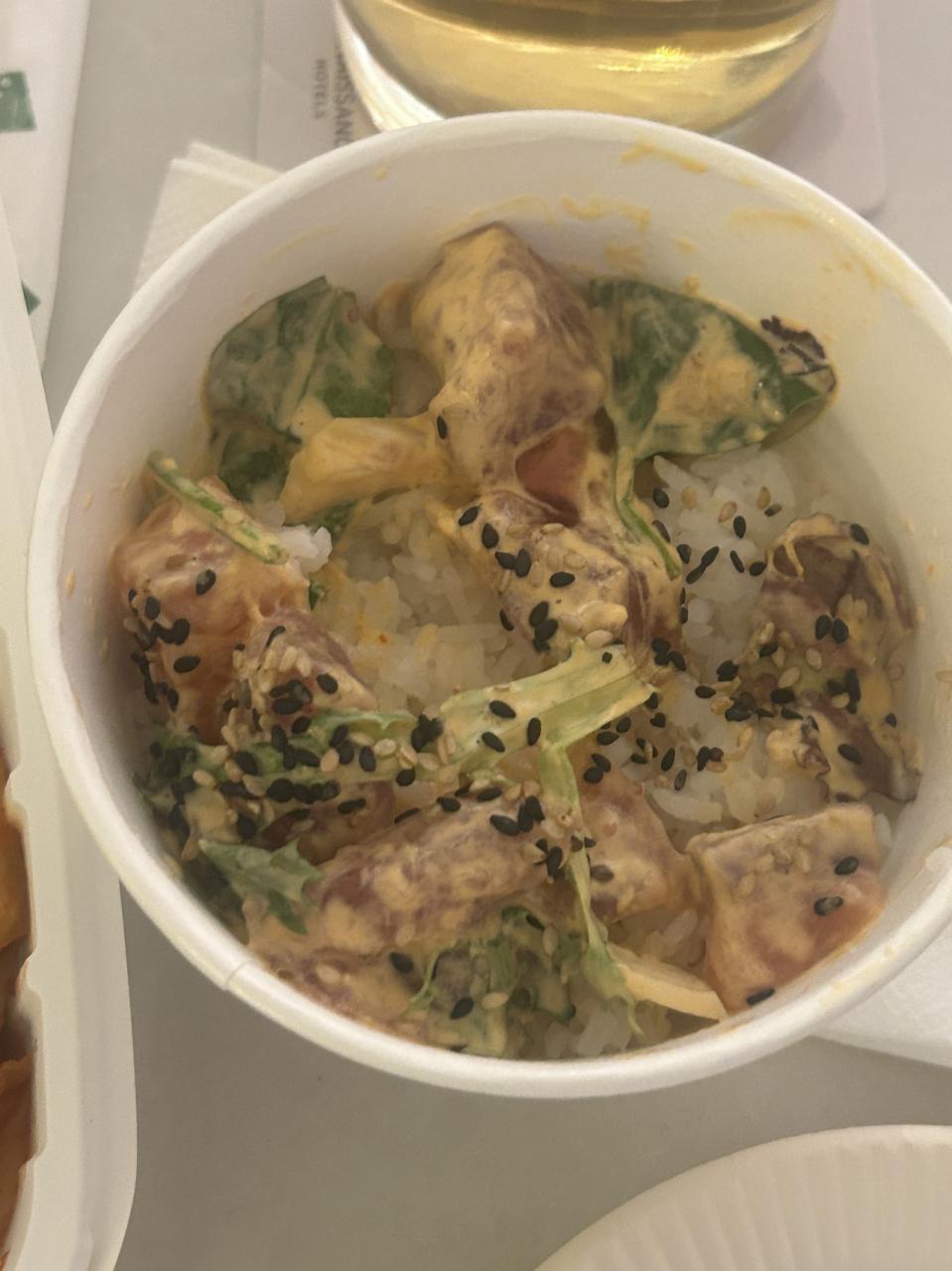 ぶらぶらしてまぐろスポットで小ボウル丼とミーバーベキューでカルビを買って