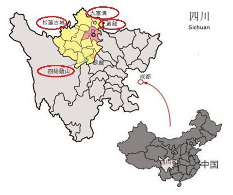 今回はMapの中と右側の長坪溝&海子溝を観光します。 -