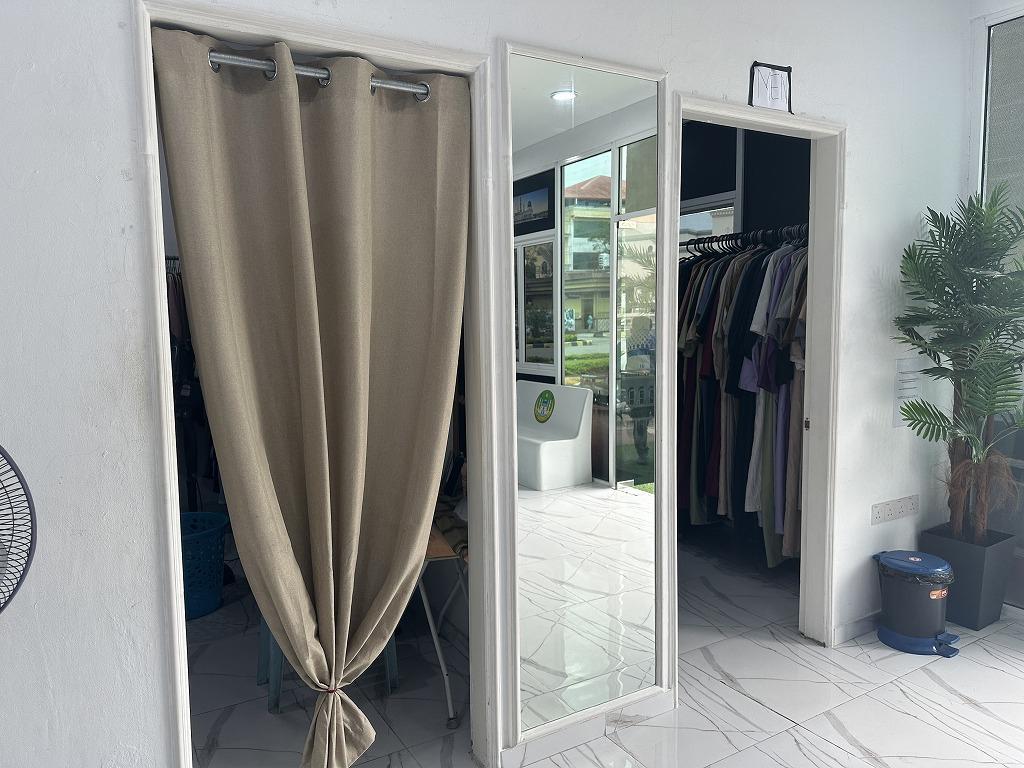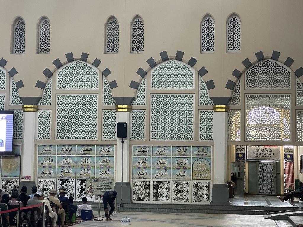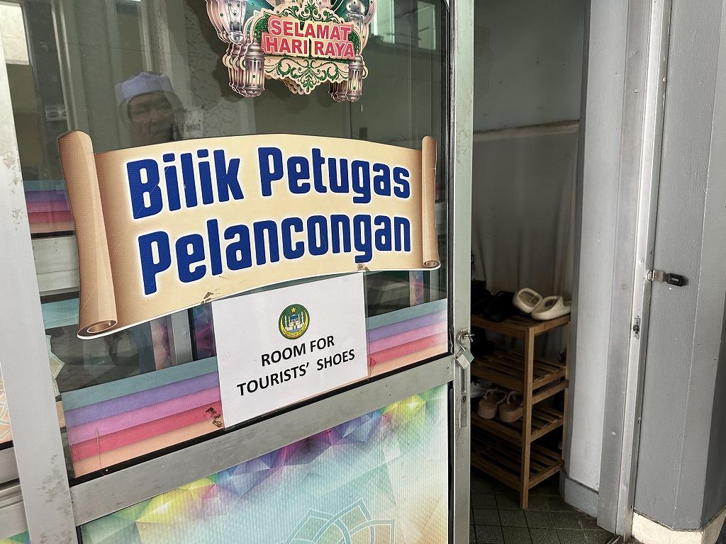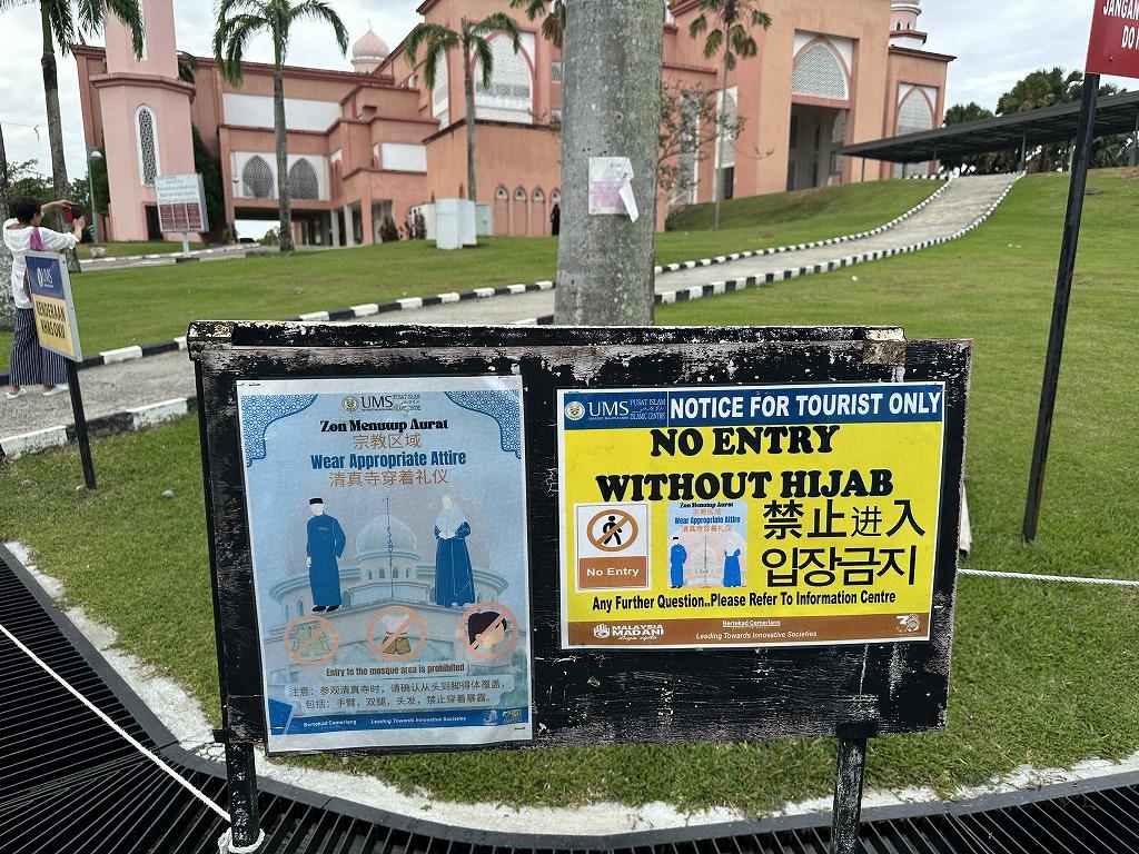 女性の方は案内の方がいて、たくさんの種類の中から選んでササっと着せてくださいます。サバ州立モスク 寺院・教会