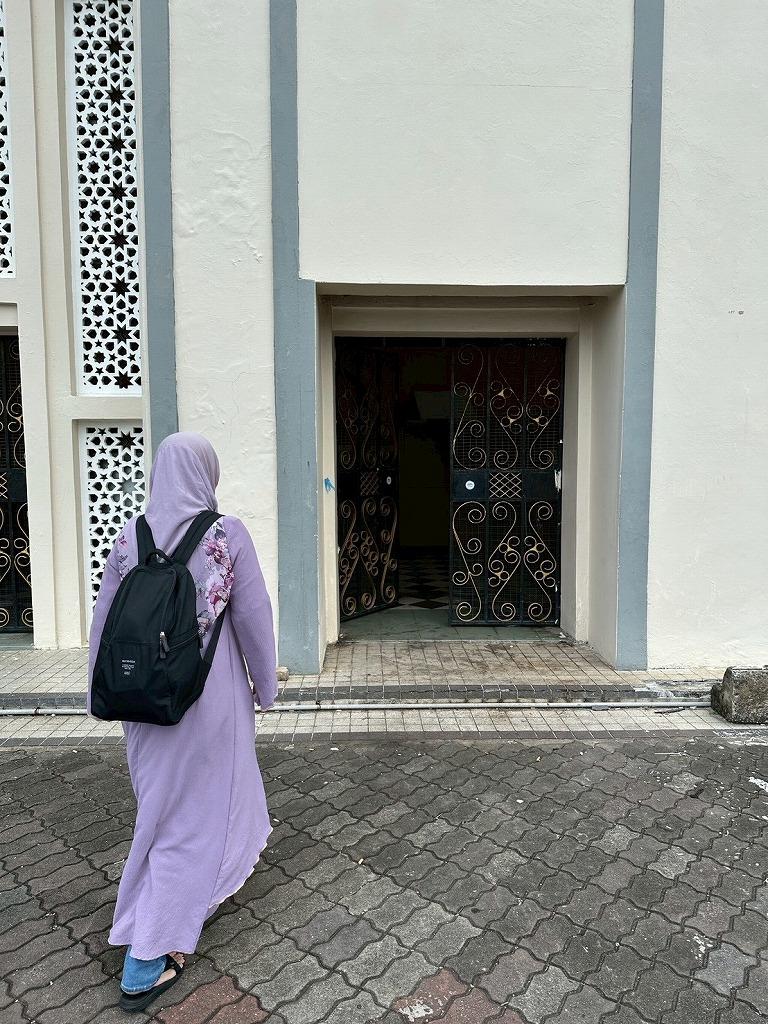 どうやらモスクの建物内だけではなく、敷地内ではガウン着用必須らしい。