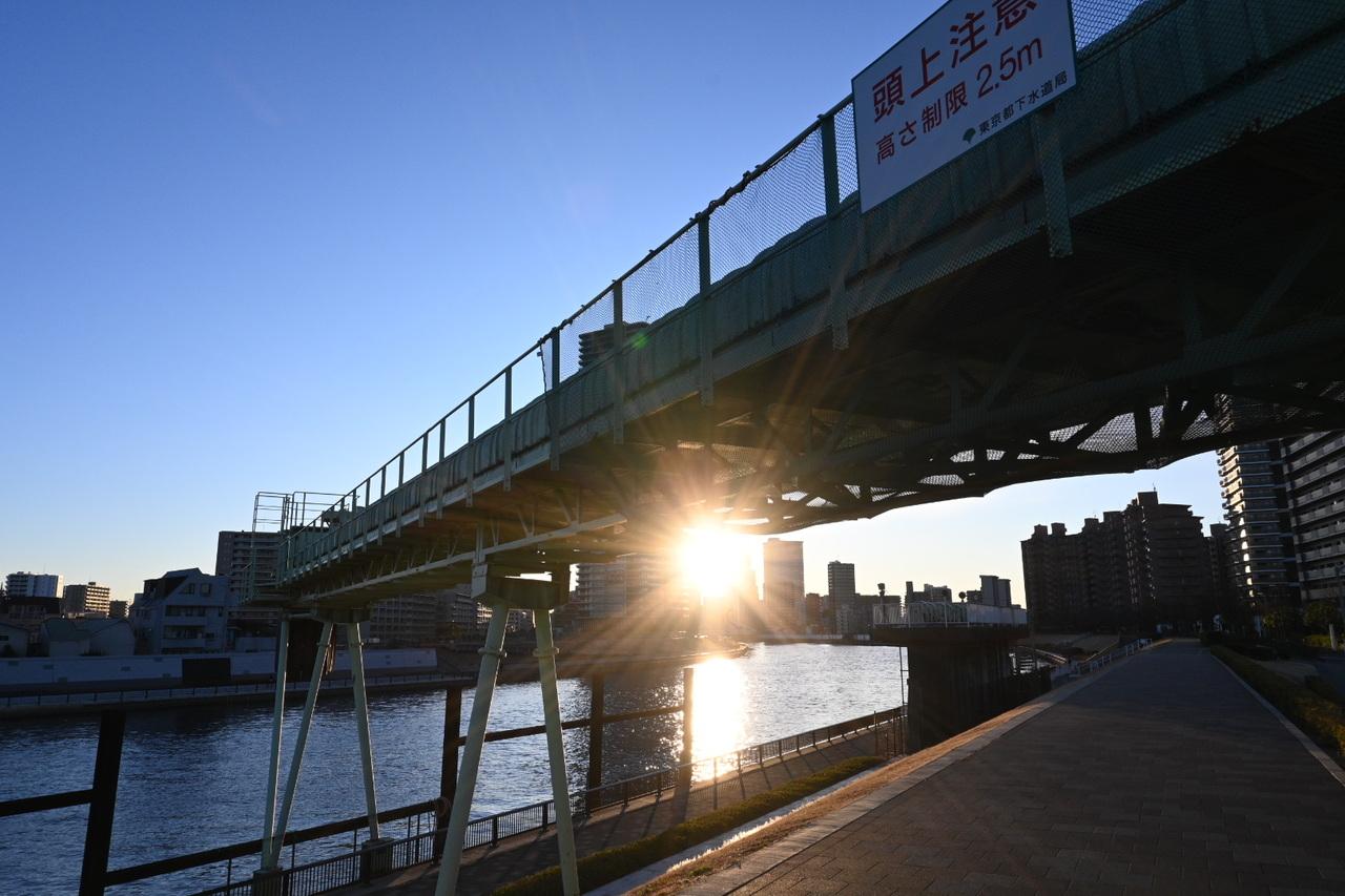 荒川区:赤土小学校(ラジオ体操会場)、京成本線 京成隅田川橋梁、隅田川、千住大橋