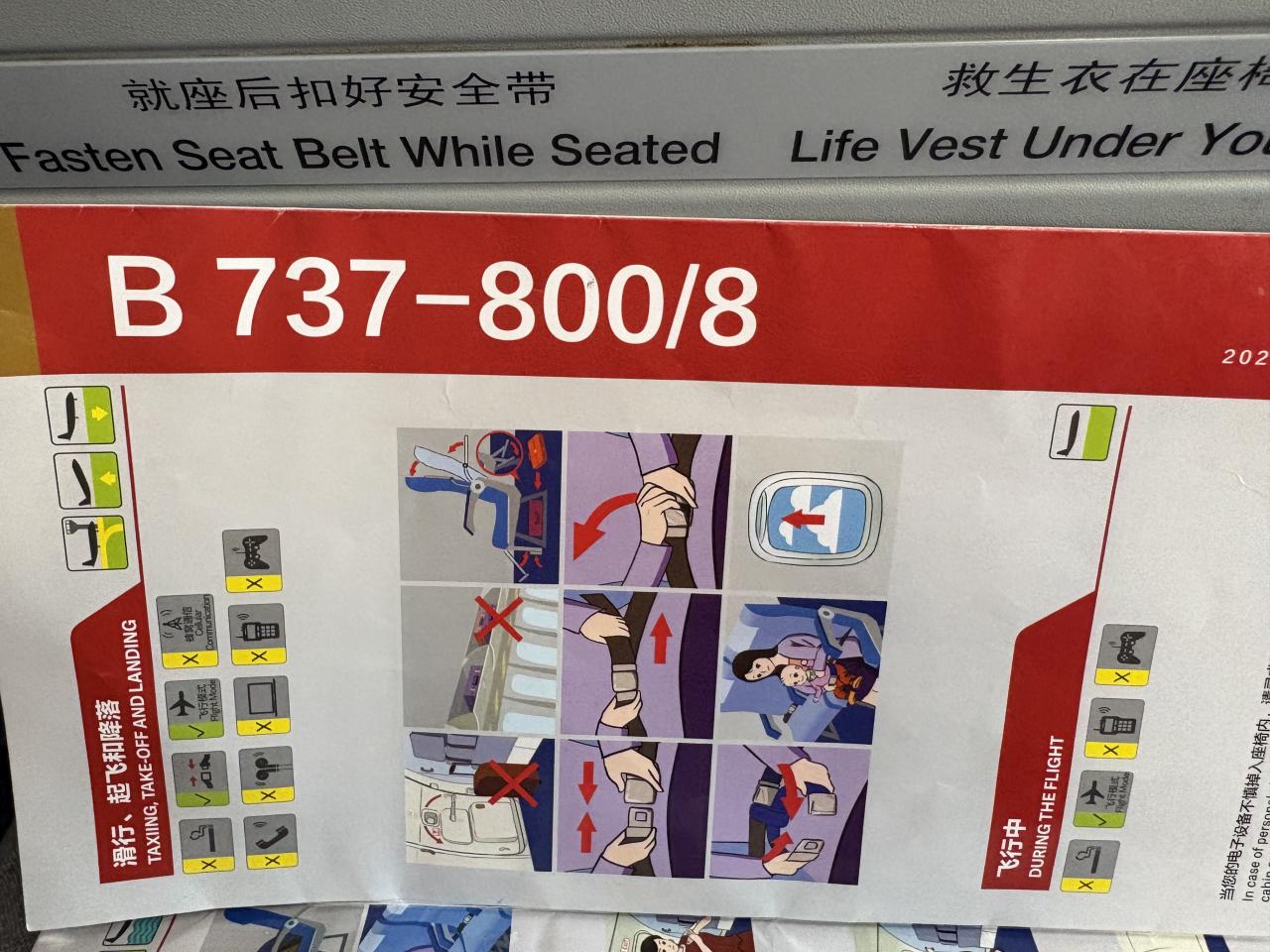 13時40分から搭乗開始でした。 SFC会員で優先搭乗のため1番に飛行機に乗りました。ツアーのため後方の座席ですが、妻とは別々でした。 今年になって、3つ目の中国の飛行機会社ですが、CAの個性は会社によって違いました。中国国際航空のCAの人はきちんとした感じで知的でした。西安旅行の時と違って、出発する前に入国カードが配られて大変助かりました。