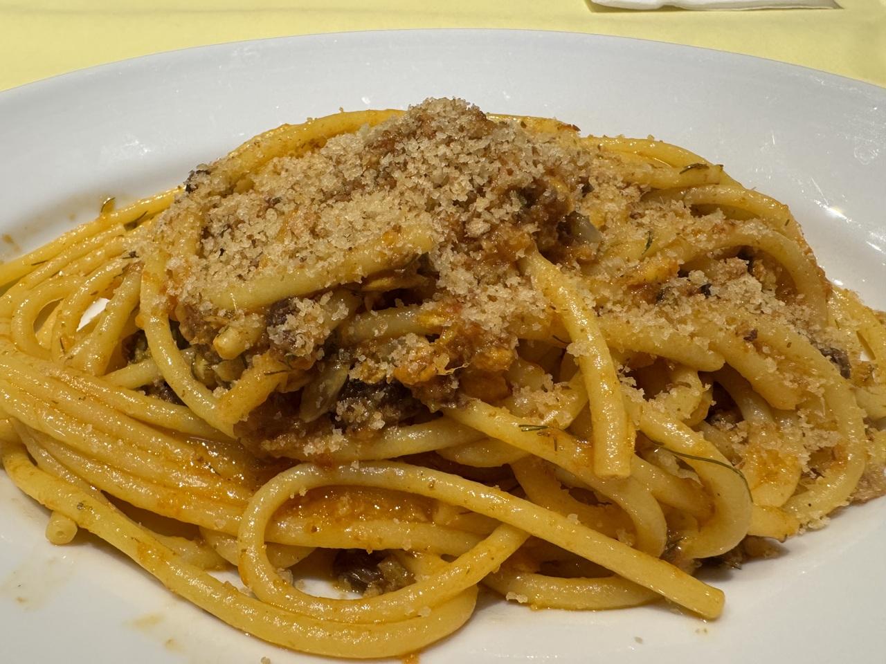 プリモはイワシのブカティーニのスパゲッティにしました