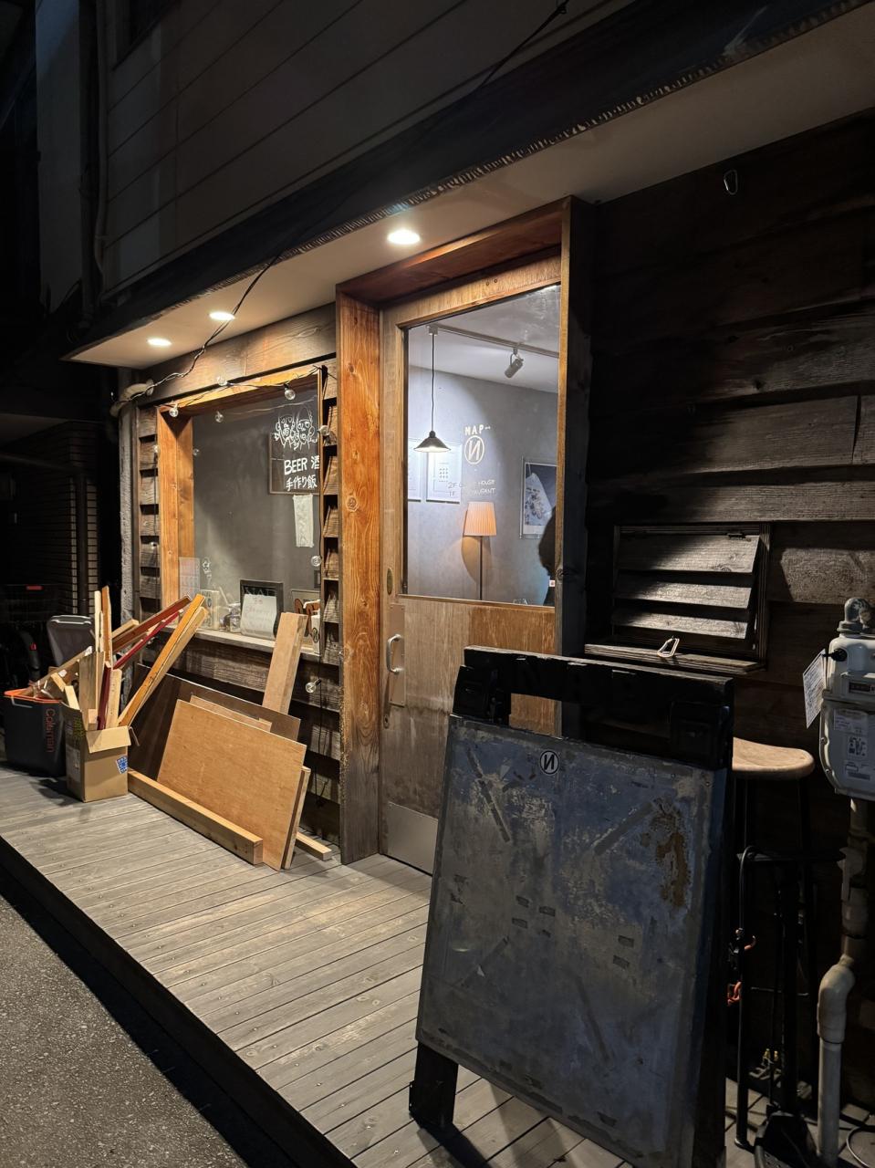 お店の前に置いてある廃材は自由に持って帰っていいそうですナップ ベッド アンド ラウンジ グルメ・レストラン