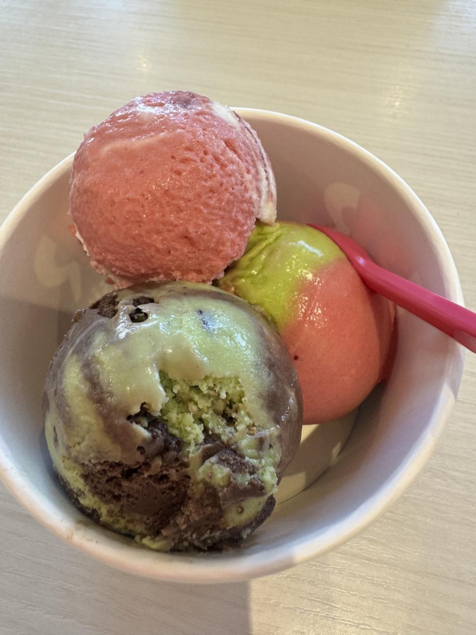 イチゴのジェラートにピンクのお皿でとってもラブリー -