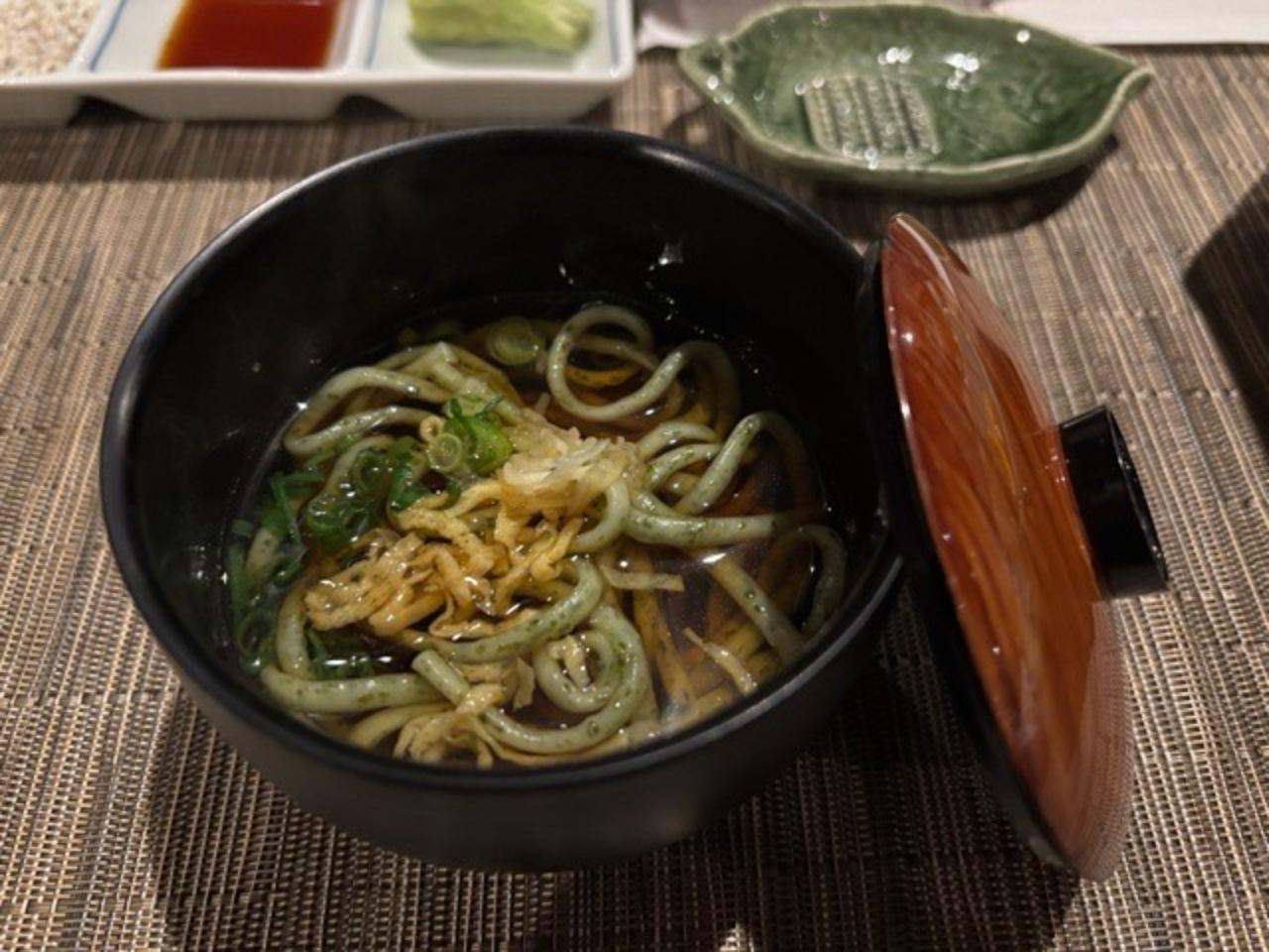 飲み物はワイン、りんごジュース、そしてほうじ茶から選び、お菓子は胡桃餅。 ご馳走様でした。