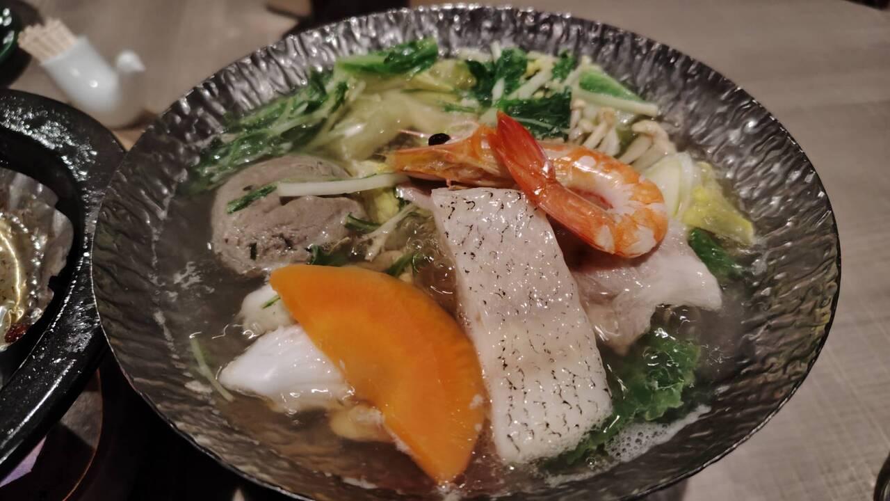 食事は2部制か、18時はすでに満席で18時半からのスタートとなりました。 レストラン「月の池」