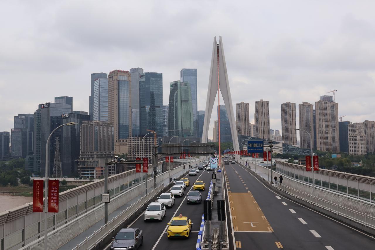 先ほど渡ってきた千厮門大橋も下に見えました。