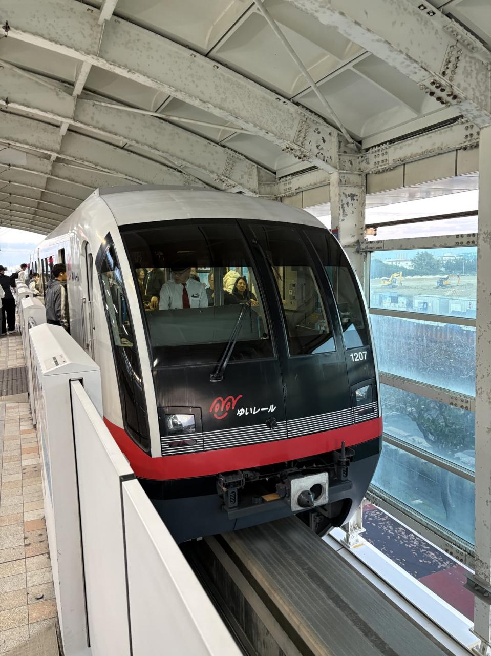 那覇空港駅で出発前のゆいレールの車両。交通系ICなどで乗車できる