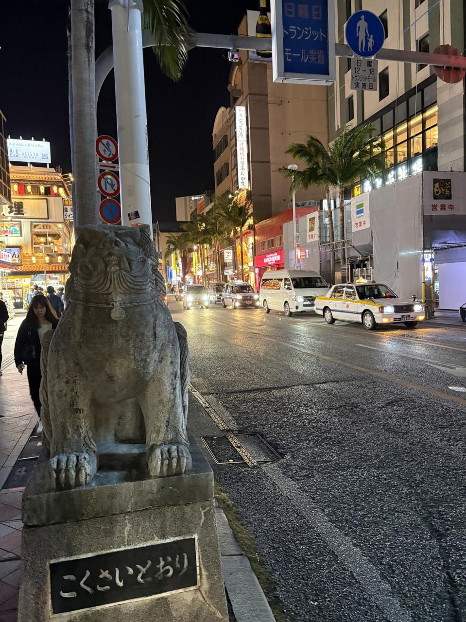 夕食を食べ終え、国際通りにたどり着いた。シーサーがお出迎え