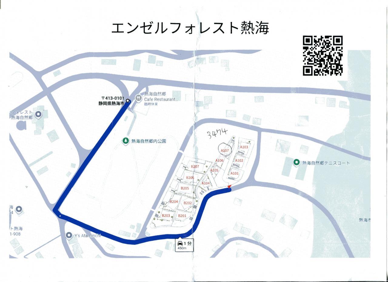 部屋の場所や行き方を聞くと、もうすぐ掲載する地図をみるとのこと。エンゼルフォレスト熱海自然郷 宿・ホテル