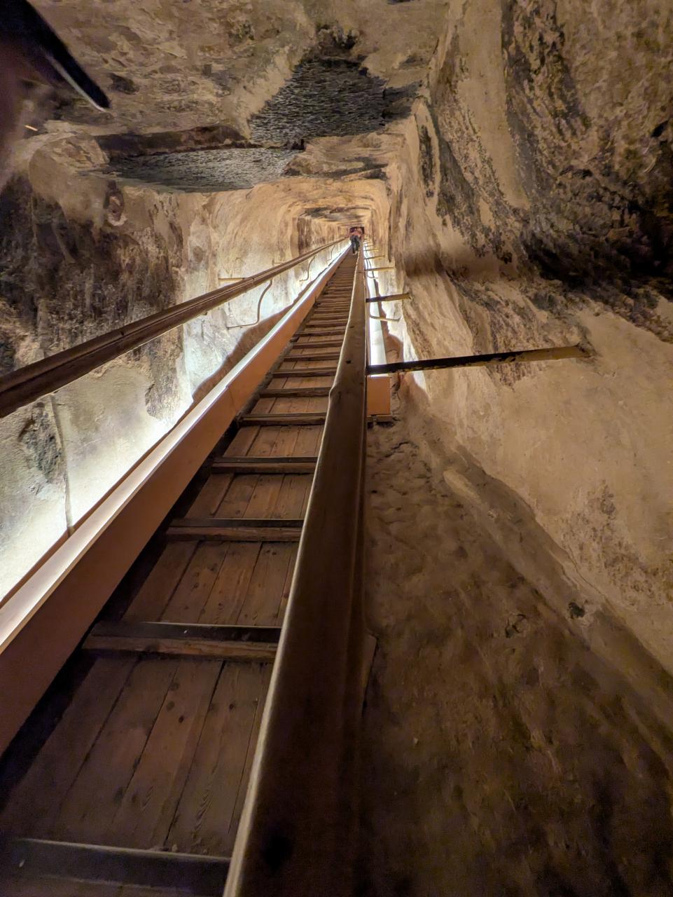 ただ、ほんの少しだけは登りと下りと別れていました。そしてその先が心臓破りの地獄でした。ほんとに死ぬかと思うほど急でさらに狭い階段をたくさん上らねばならず、何度も頭を上の石にぶつけながら汗をたらして上り詰めました。なので、そこのところの写真は撮れませんでした。