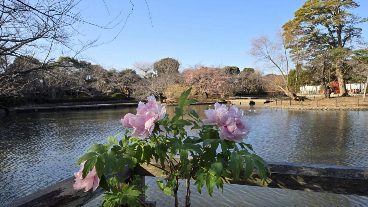 神苑では新春に4月も牡丹が楽しめます、ソメイヨシノに牡丹も素敵でしょうね