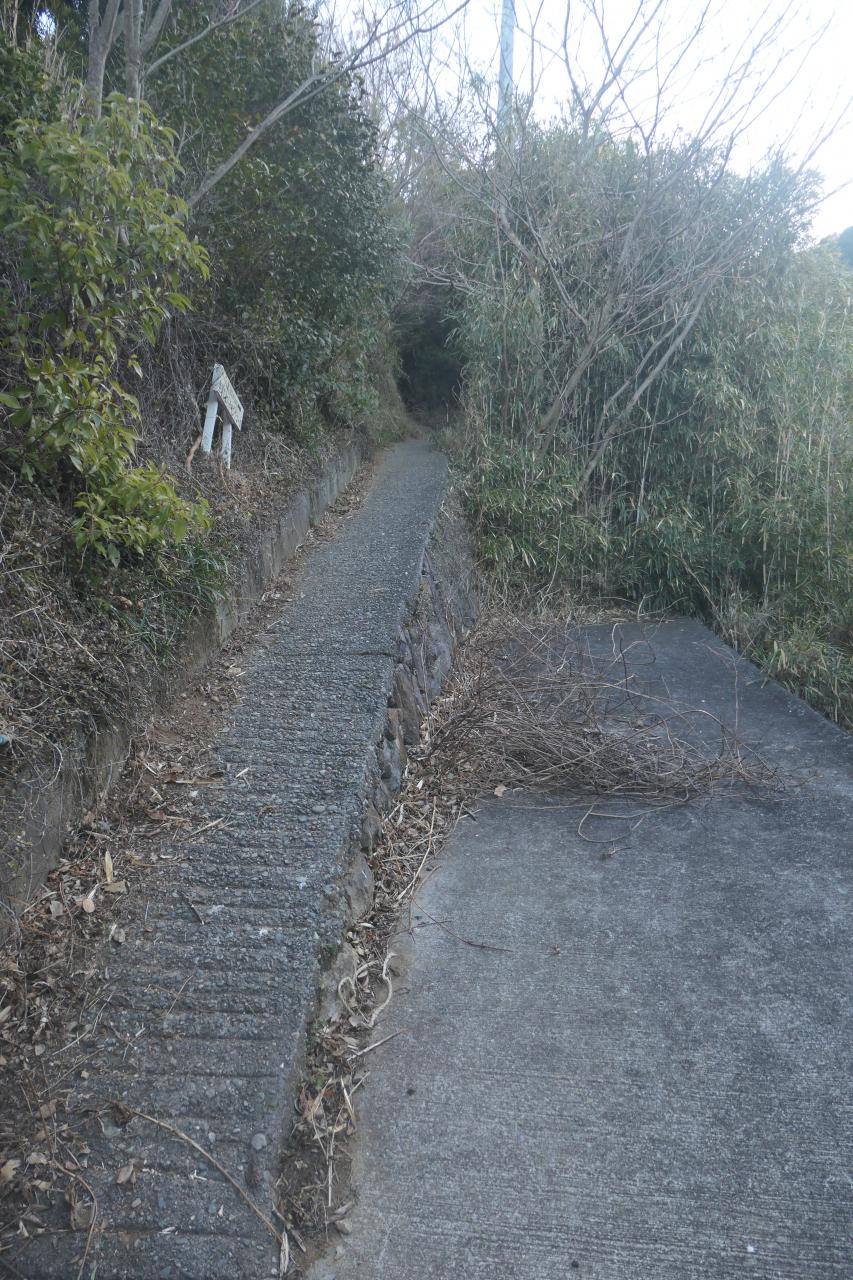 道が途切れ、端っこの狭い階段を登ると登山道に入ります。